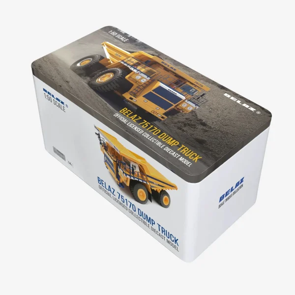 Масштабная модель карьерного самосвала БЕЛАЗ 75170 (масштаб 1:50 ) выполнена с высокой точностью и детализацией. Модель имеет реалистичные пропорции, шесть колёс с протектором и состоит из примерно 110 деталей. Поставляется в жёсткой упаковке (металлическом ящике) для защиты и хранения.