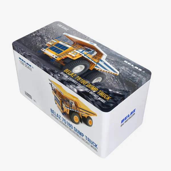 Масштабная модель карьерного самосвала БЕЛАЗ 75180 (масштаб 1:50 ) выполнена с высокой точностью и детализацией. Модель имеет реалистичные пропорции, шесть колёс с протектором и состоит из примерно 110 деталей . Поставляется в жёсткой упаковке (металлическом ящике) для защиты и хранения.