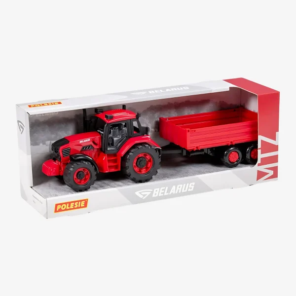 Игрушка-трактор Belarus по лицензии ОАО «Минский тракторный завод» — юбилейная модель к 75-летию завода. Инерционный механизм, капот с фиксацией, прицеп с открывающимися бортами. Размер: 370 × 100 × 110 мм. Вес: 520 г. Продаётся в красочной подарочной коробке.