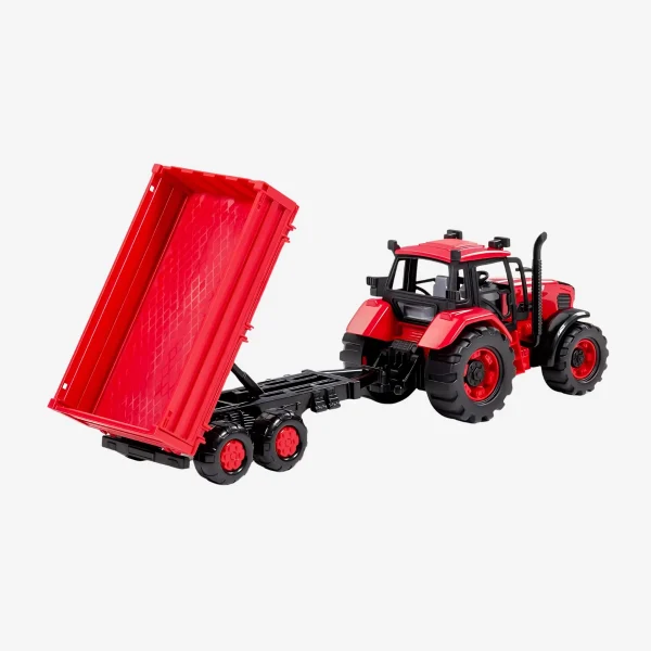 Капот можно открыть и зафиксировать в вертикальном положении — ребёнок может «чинить» технику во время игры, развивая фантазию и моторику. В комплекте предусмотрен прицеп с возможностью подъёма бортов, что делает игровые сценарии более разнообразными и реалистичными.