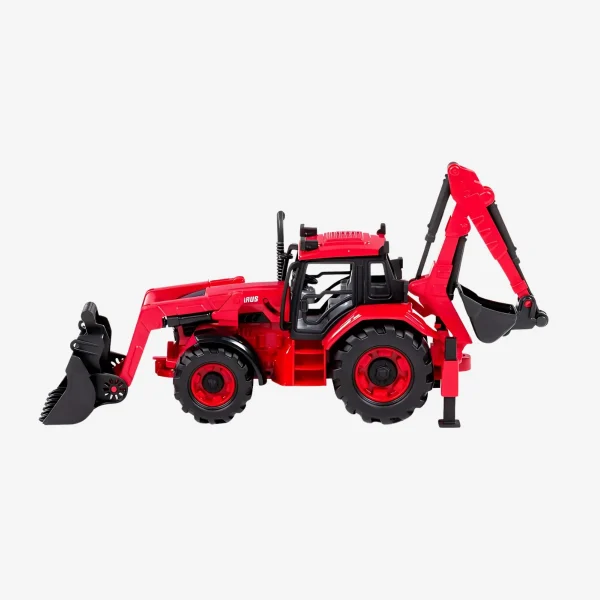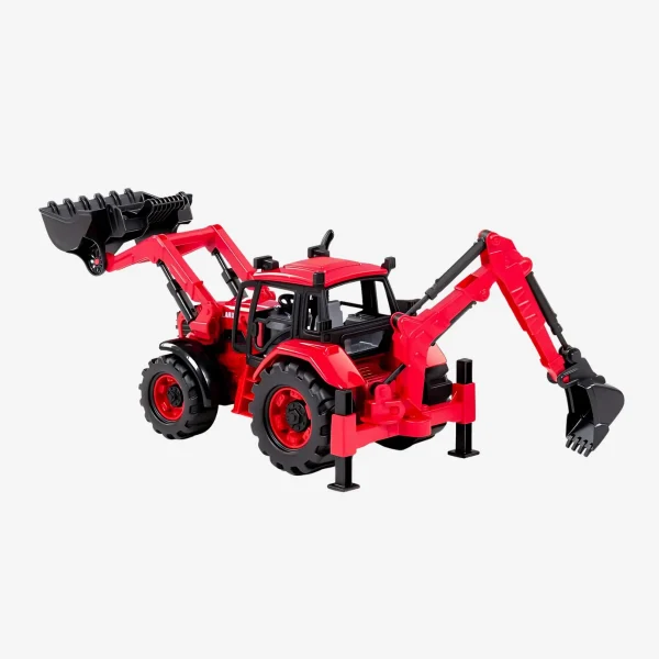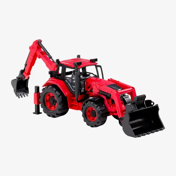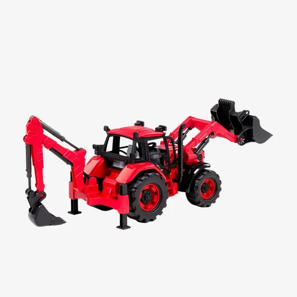 Капот можно открыть и зафиксировать в вертикальном положении — ребёнок может «ремонтировать» технику во время игры, развивая фантазию и моторику. В комплекте предусмотрен экскаватор и погрузчик, что делает игровые сценарии ещё более увлекательными и приближенными к реальной работе спецтехники.