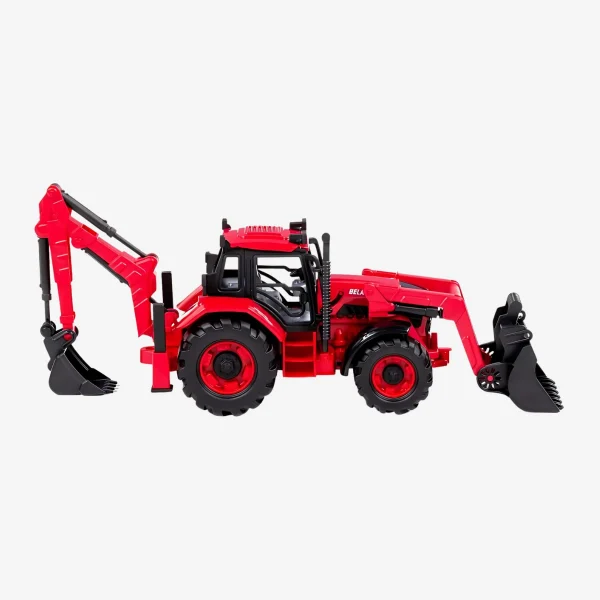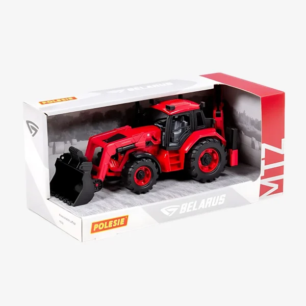 Игрушка-трактор Belarus по лицензии ОАО «Минский тракторный завод» — юбилейная модель к 75-летию завода. Инерционный механизм, капот с фиксацией, экскаватор и погрузчик. Размер: 260 × 105 × 135 мм. Вес: 510 г. Продаётся в красочной подарочной коробке.